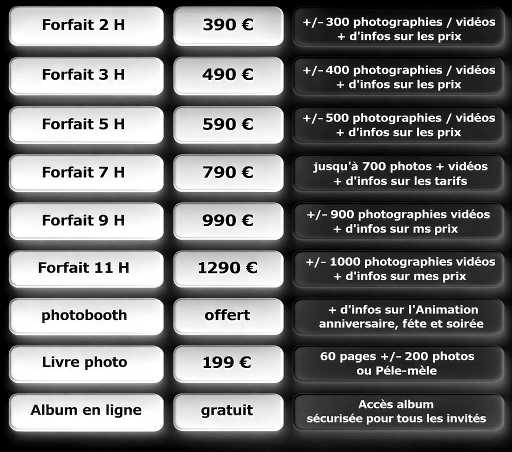 vos photos et vidéos qui vous seront remises sur une clé USB.